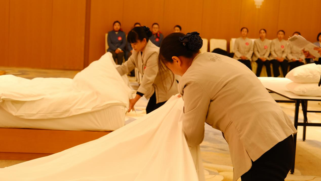 今年6月,问梅村正式发布《服务质量规范》,将服务流程细分为9大模块、数百项具体标准,从客房清洁的“八步流程”到餐饮出品的“五道把关”,从停车引导到演艺活动的准时开演,每一环节皆有章可循、有标可依。本次技能大赛,正是对这一规范落地成效的实战检验。