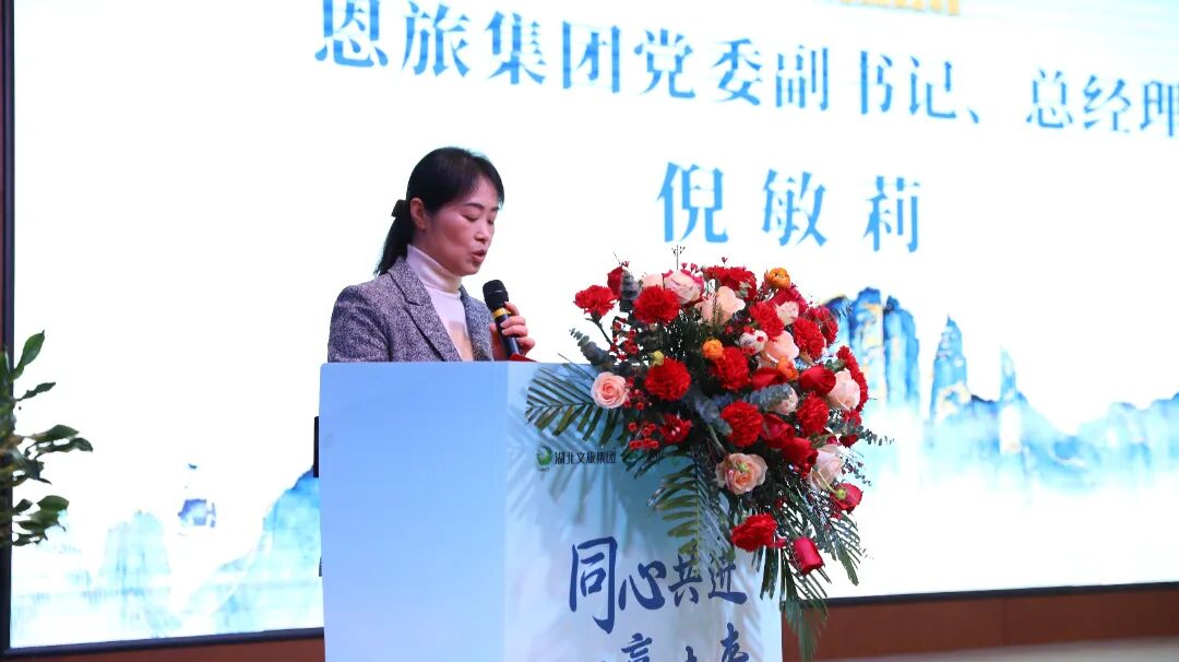 恩旅集团党委副书记、总经理倪敏莉向与会嘉宾致以热烈欢迎和衷心感谢。她表示,2025年,恩旅集团、鄂旅股份双双荣登“华中区域文旅集团TOP10”与“文旅企业品牌传播力百强”榜单,这份沉甸甸的荣誉,凝结着每一位合作伙伴的智慧与汗水,更印证了“同心同行、合力共赢”的深厚情谊。2026年,恩旅集团、鄂旅股份将以“深化合作、共创价值”为核心,聚焦创新产品,打造爆款矩阵;赋能渠道,构建共赢生态;深化联动,拓展客源市场。同时,恩旅集团、鄂旅股份将以更灵活的政策、更优质的产品、更高效的服务,携手各位合作伙伴,共同书写恩施旅游高质量发展的新篇章,为建设世界知名旅游目的地贡献力量。