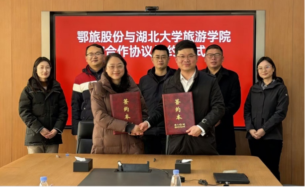 1月23日,湖北省鄂旅投旅游发展股份有限公司(以下简称“鄂旅股份”)与湖北大学旅游学院战略合作协议签订仪式举行。湖北大学旅游学院院长余意峰、鄂旅股份总经理樊后涛代表双方签约。