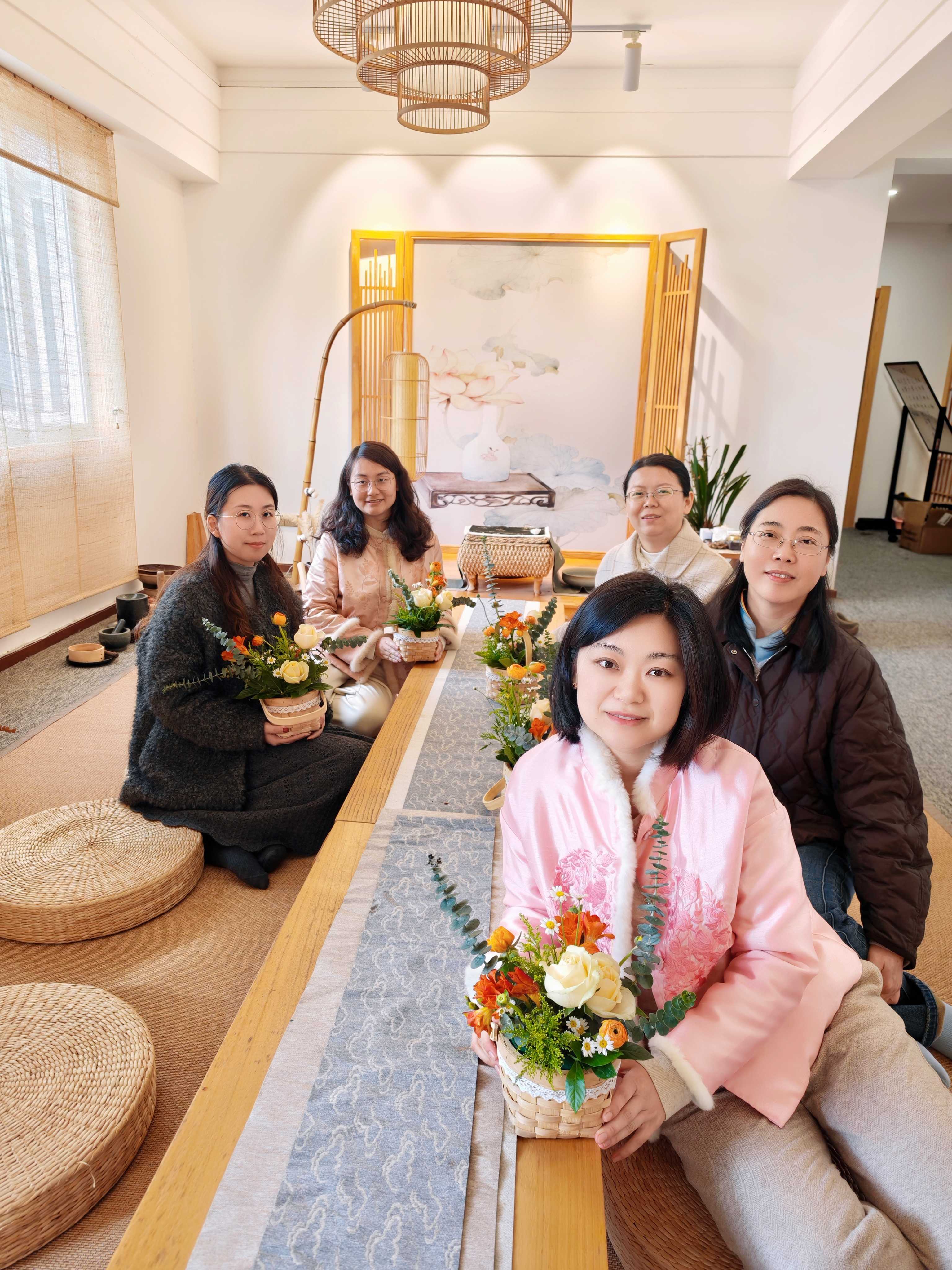 活动伊始,专业花艺老师从东方花道的历史渊源切入,生动讲解了花材特性、色彩搭配与空间构图等专业知识。在随后的实践环节,大家纷纷化身“花艺达人”,挑选心仪花材开启创作。修剪花枝时,大家神情专注、下剪果决,尽显职场女性干练风采;搭配色彩时,或大胆创新、或精打细算,体现出严谨细致的工作态度。现场气氛温馨愉悦,大家在交流互动中激发灵感,在协作配合中分享乐趣,欢声笑语萦绕其间。