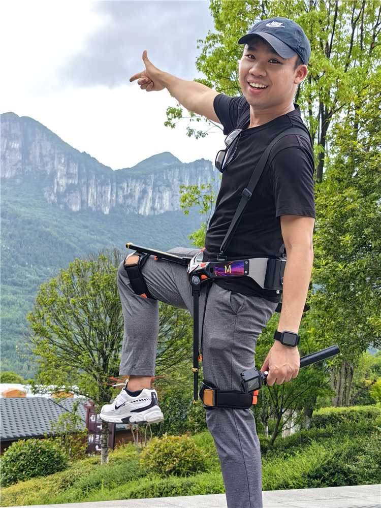 泰国博主闻名穿戴仅1.8公斤的设备攀行七星寨,AI算法实时感知步态:陡坡自动提供70%助力,下坡切换缓冲模式。“这简直是‘钢铁侠’的现实版!”闻名惊叹:“恩施将科技融入山川游览,让行动不便者也能触摸自然奇迹,这是文旅品质的温度。”