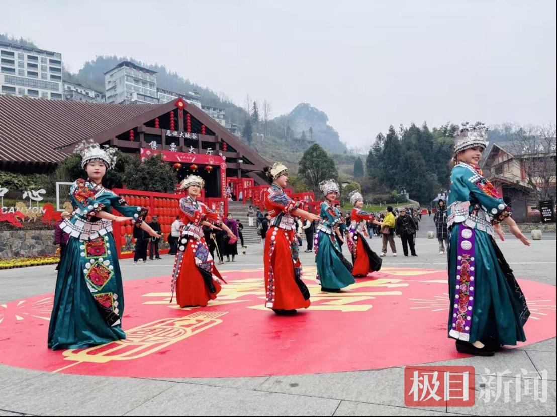 2026年丙午马年新春,恩施大峡谷景区张灯结彩,化身为一片欢乐的海洋。2月17日,一场以“峡谷纳福·万福迎春”为主题的新春祈福会热闹开启,将深厚的土家非遗文化与现代科技创意深度融合,为游客献上了一场别开生面的文旅开年大戏。