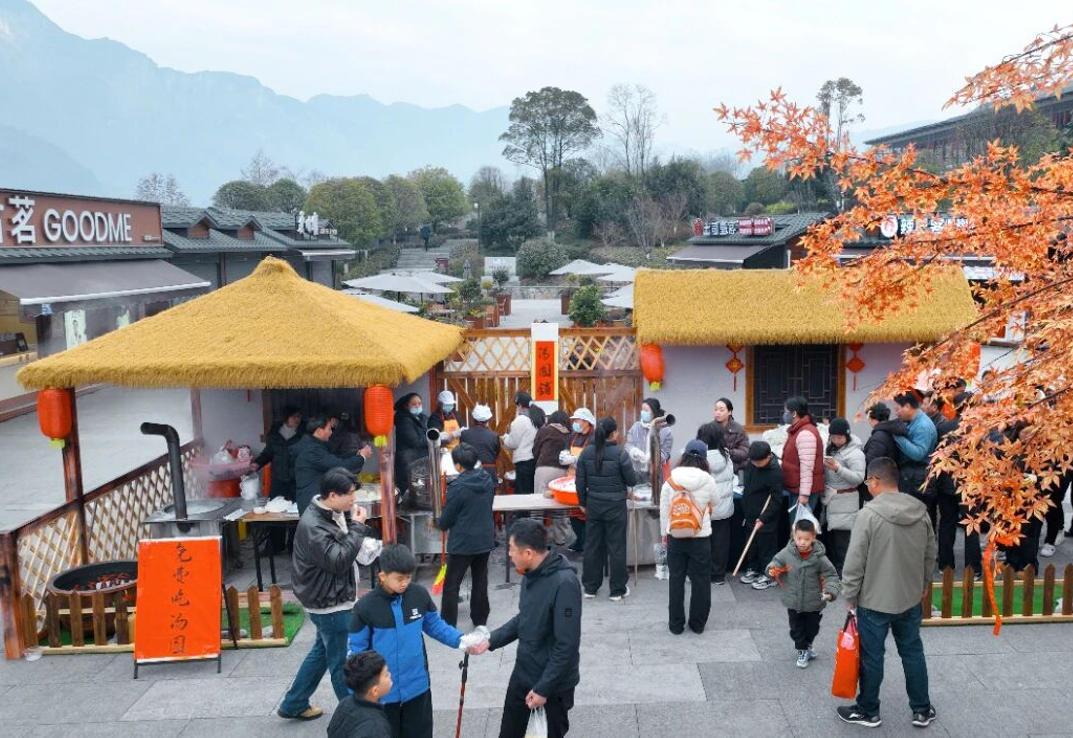 节日期间,恩施大峡谷张灯结彩、喜气盈门。土家摆手舞、舞龙舞狮、原生态山歌等民俗展演轮番上演,民族风情浓郁,年味儿十足。马年主题机器马互动表演新颖有趣,成为景区热门打卡点,吸引游客驻足观赏、互动留念。景区还为游客送上热气腾腾的免费汤圆,以暖心服务传递新春温情。