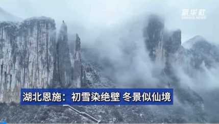 新华社聚焦恩施大峡谷,初冬染绝壁,冬景似仙境。