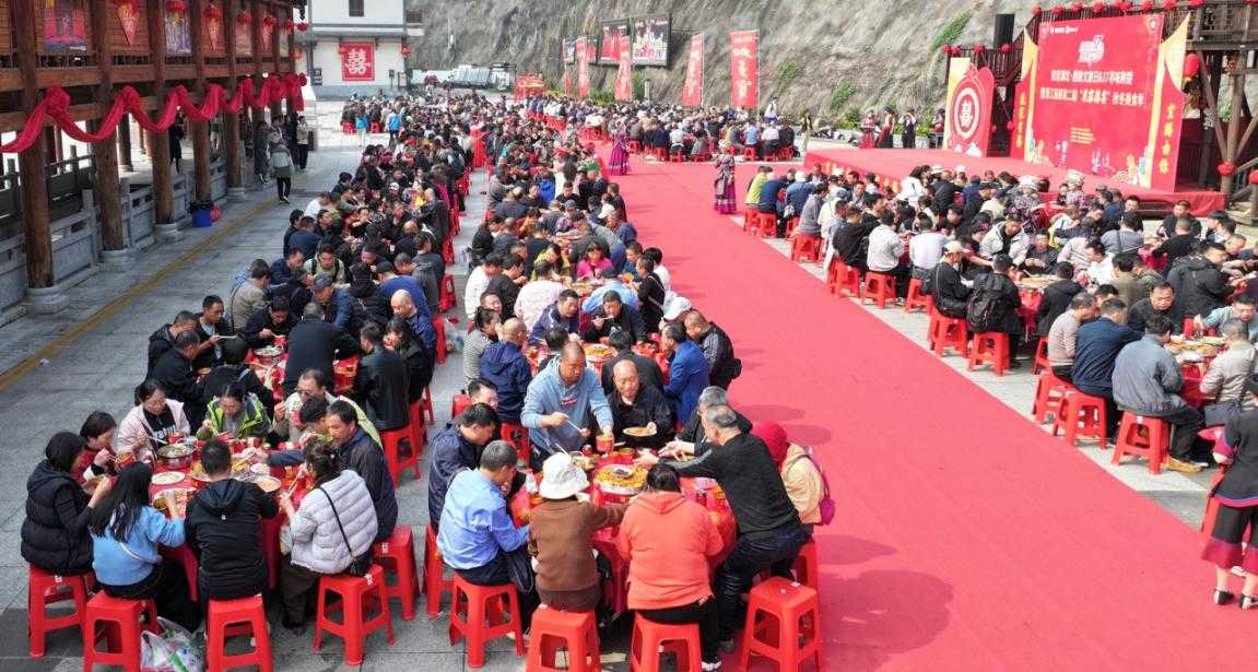 在清江方山,奇石林立、清溪潺潺、山风轻拂,游客们沿着栈道穿行其间,尽情感受大自然的鬼斧神工,不时发出阵阵惊叹。而在清江画廊,秋日的雾气笼罩着清江,营造出如梦如幻的景致。游客们悠然漫游清江,仿佛置身于一幅流动的山水画卷中,真切体会“舟行碧波上,人在画中游”的优美意境。探寻“巴人故里、土家摇篮”的悠远神秘,一场土家民俗重头戏——“花家囍宴”更是将活动推向高潮。游客们深度参与抬喜轿、背喜被、迎送亲、吃喜宴等各个环节,现场欢歌笑语不断,游客们情绪高涨。