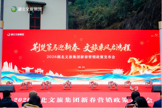 12月24日,“荆楚策马迎新春 文旅乘风启鸿程”2026湖北文旅集团新春营销政策发布会在宜昌隆重举行。鄂旅股份酷驰科技的机器狗天团惊艳亮相,以灵动创意点亮现场氛围。