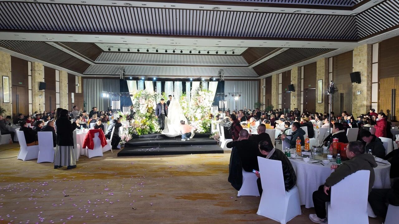 婚宴市场“一马当先”,一站式场景受青睐。依托湿地美景,金湾酒店新春婚宴预订火爆,文泉厅、金湾厅及户外草坪等多场景婚礼同期上演,为新人镌刻下幸福开篇。