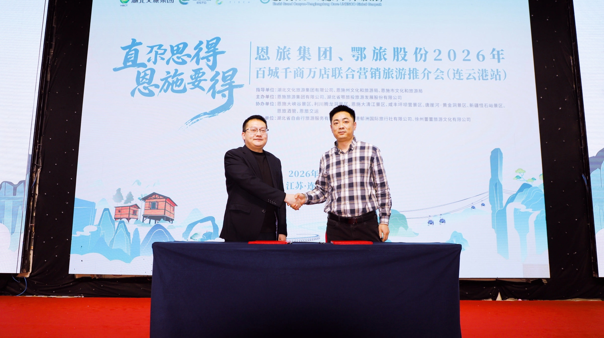 文旅推介环节,恩施大峡谷的雄伟、大清江的灵秀、坪坝营的清新、唐崖河·黄金洞的地质奇观赢得阵阵掌声。现场,恩旅集团与连云港渠道合作伙伴签署战略合作协议,双方将围绕客源互送、产品开发等开展深度合作。
