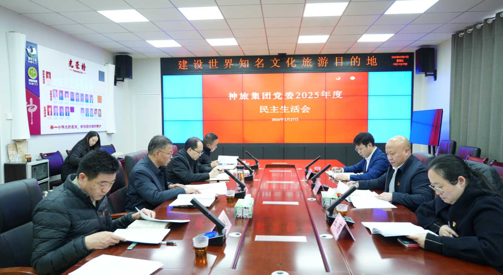2月27日,神旅集团党委2025年度党员领导干部民主生活会在木鱼208会议室召开。会议由集团党委书记、董事长王中林主持,湖北文旅集团党委委员、副总经理、第七督导组组长周永彪到会督导并讲话,湖北文旅集团战略投资与发展部副部长王茜、景旅运营事业部高级经理陈昊到会指导,神旅集团党委班子成员参加会议。