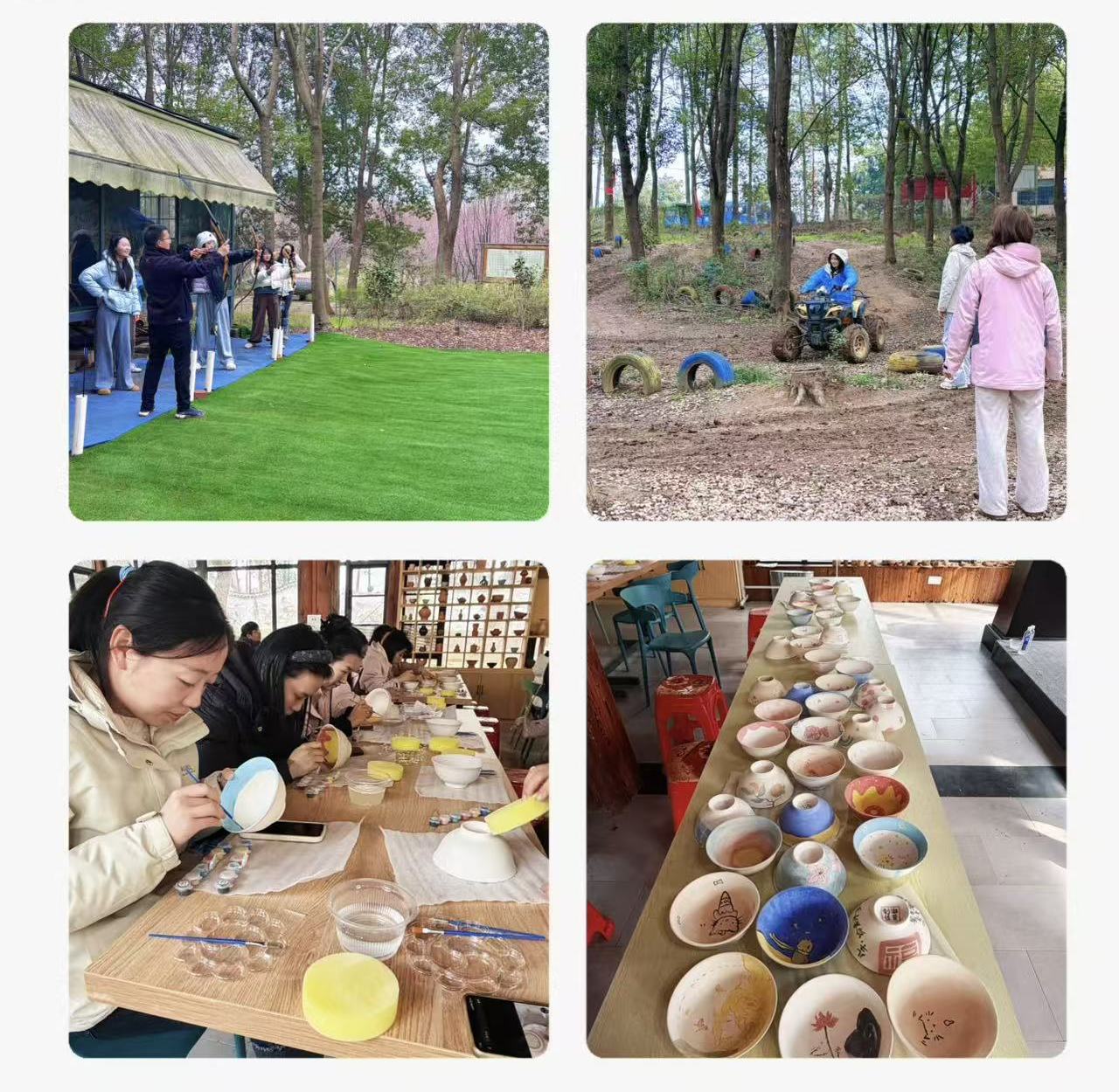 现场氛围轻松愉悦,女职工们以瓷盘为纸,以釉彩为墨,用心填充色彩,制作出一个个独具匠心的手绘作品。手绘创作结束后,大家骑行越野摩托车穿梭在田野间,一边欣赏沿途春色,一边畅谈工作生活。