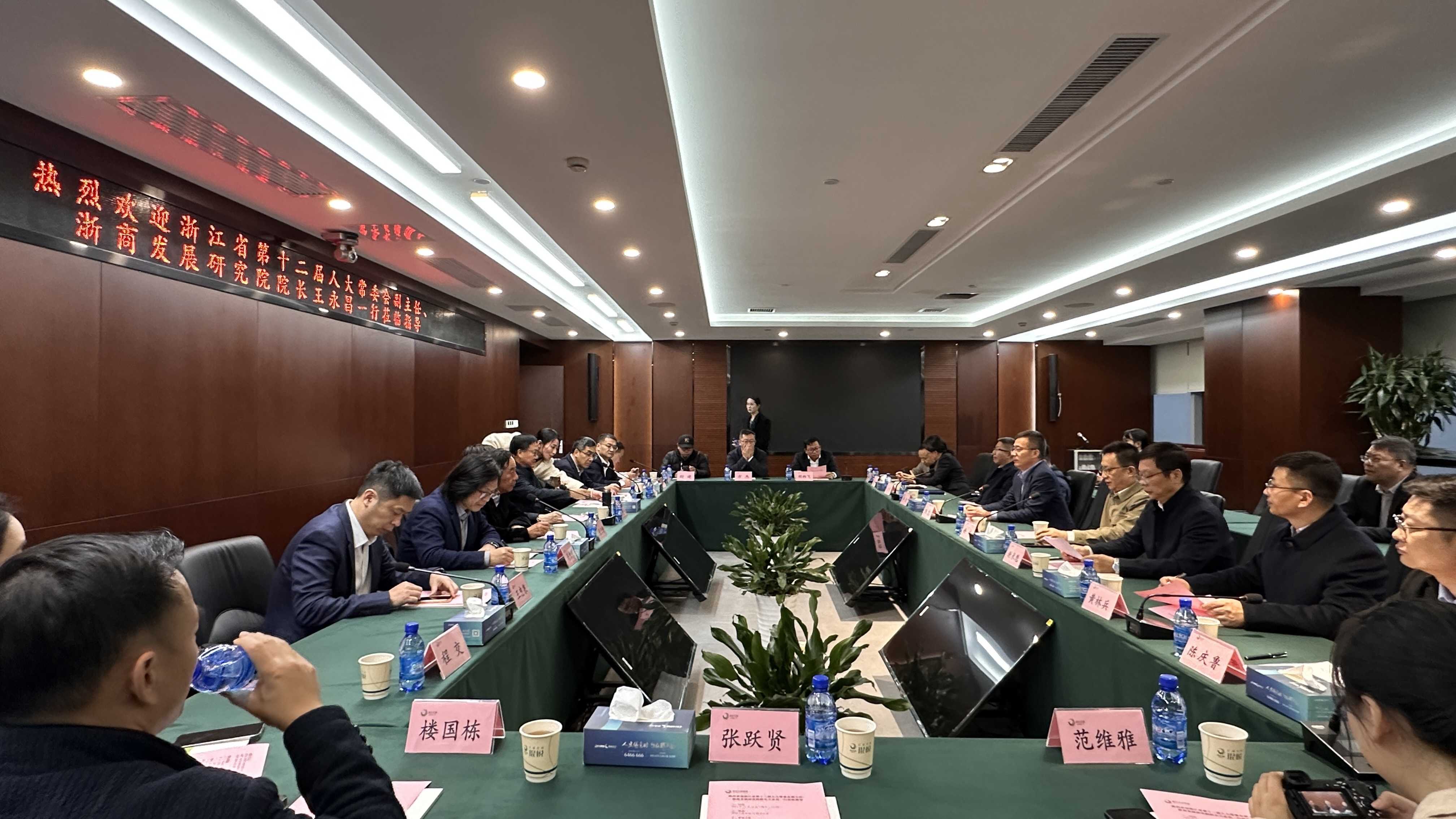 12月10日,浙江省第十二届人大常委会副主任、浙商发展研究院院长王永昌率浙商考察团到集团考察,与集团党委书记、董事长陈忠座谈交流。浙江省政协原委员、社会法制委员会主任、浙商发展研究院副院长方泉尧,集团党委委员、总会计师、总法律顾问徐诚,董事会秘书、体育集团党委书记、董事长李欣参加座谈。