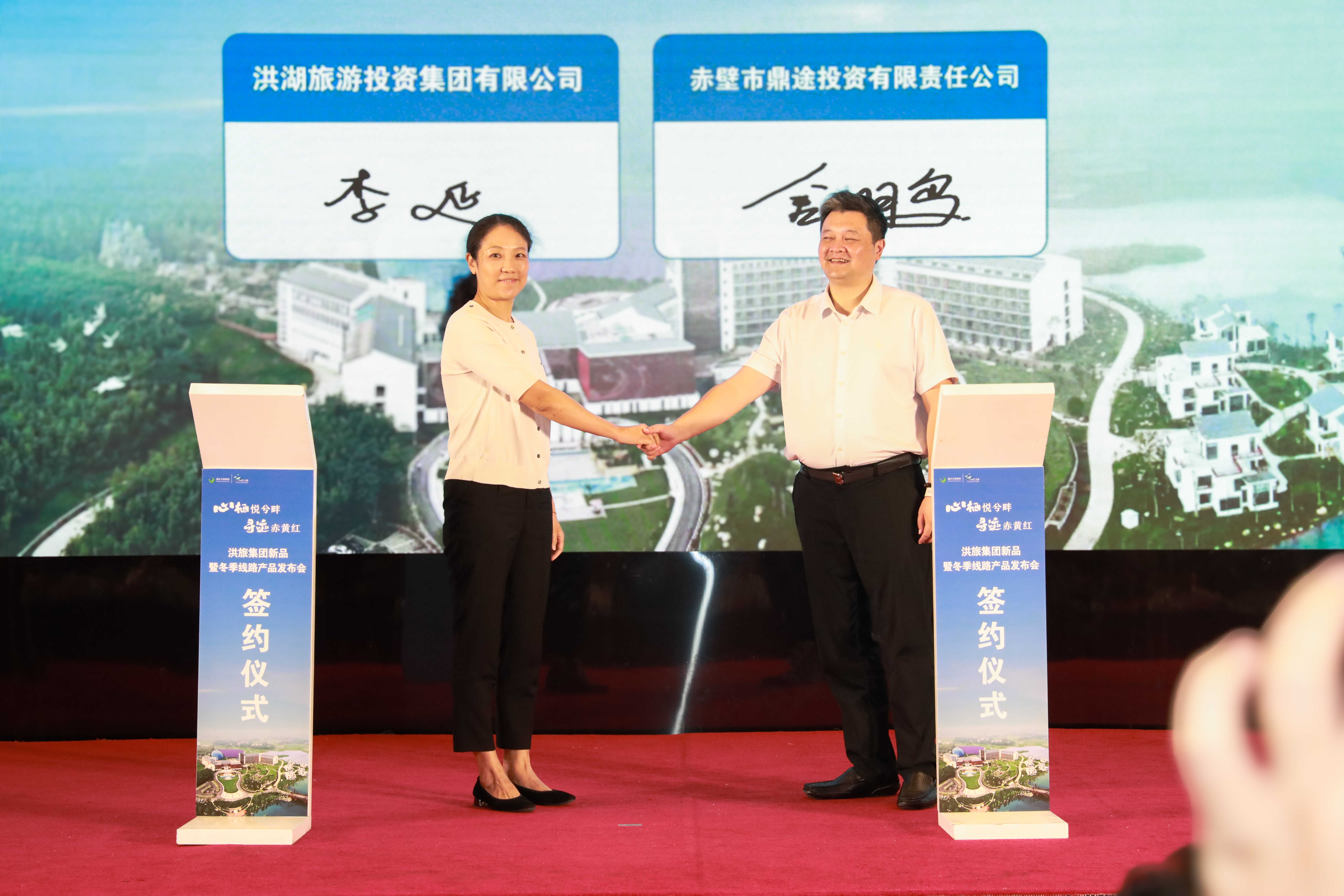 发布会上,洪旅集团重点推介悦兮景区焕新升级后的悦玖・滨湖雅苑别墅、悦心・溪畔林居树屋与澜泉悦舍公寓,以及“赤黄红”冬季线路产品,并在发布会现场与多家旅行社代表成功签约。