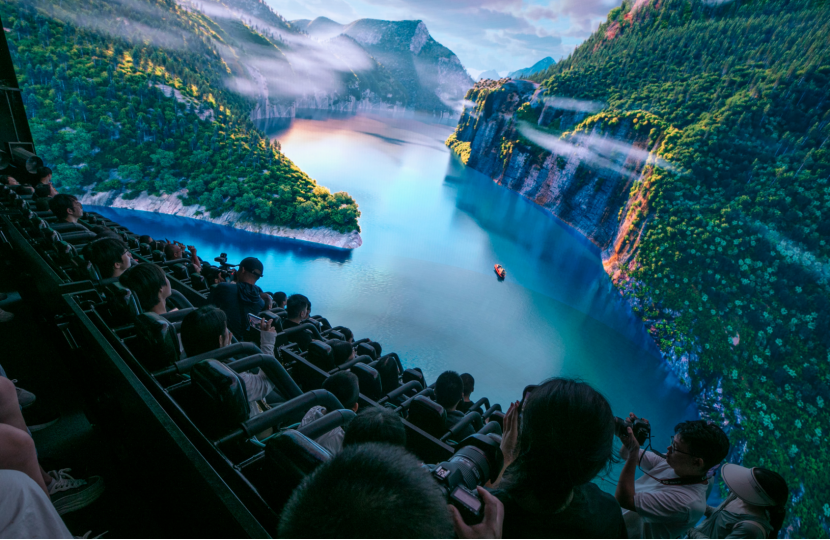 游客在数字球幕影院观看影片。(湖北日报全媒记者 蔡俊 通讯员 徐昕 鹿一鸣 摄)