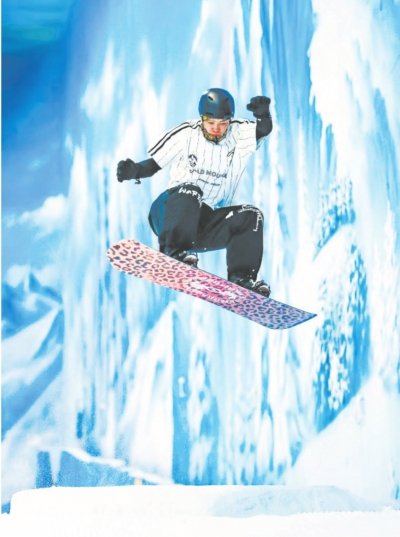 滑雪爱好者在雪场展现高超技术(实习生罗飞扬 摄)