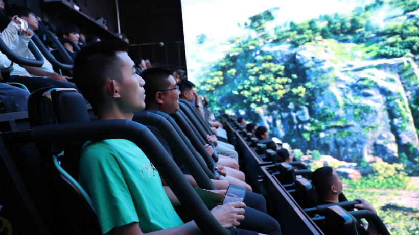 球幕影院位于恩施大峡谷景区老游客中心,影院将恩施大峡谷的美景创新融合了最新VR虚拟技术、球幕投射、飞行影院与8D技术,影院配备有动感飞行座椅,观众以“飞行”的第一视角可以感受到飞行俯冲、爬升,还可以与画面内容同步感受到风、雨、雪等真实体验,给观众带来一场立体、震撼的视听盛宴。