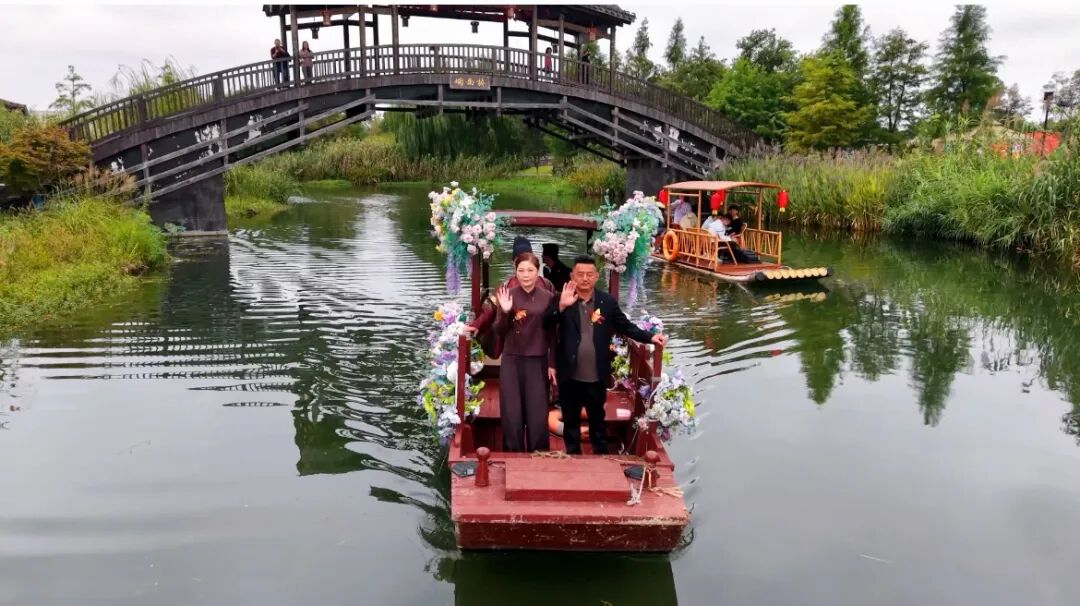 据悉,国庆期间沔阳小镇推出的中式水上婚礼系列产品,通过场景创新与礼仪复原,正吸引越来越多年轻群体关注传统婚俗文化。此次婚典作为先例,不仅为景区带来新业态,更让游客在沉浸式体验中感受到中华礼仪文明的永恒魅力。