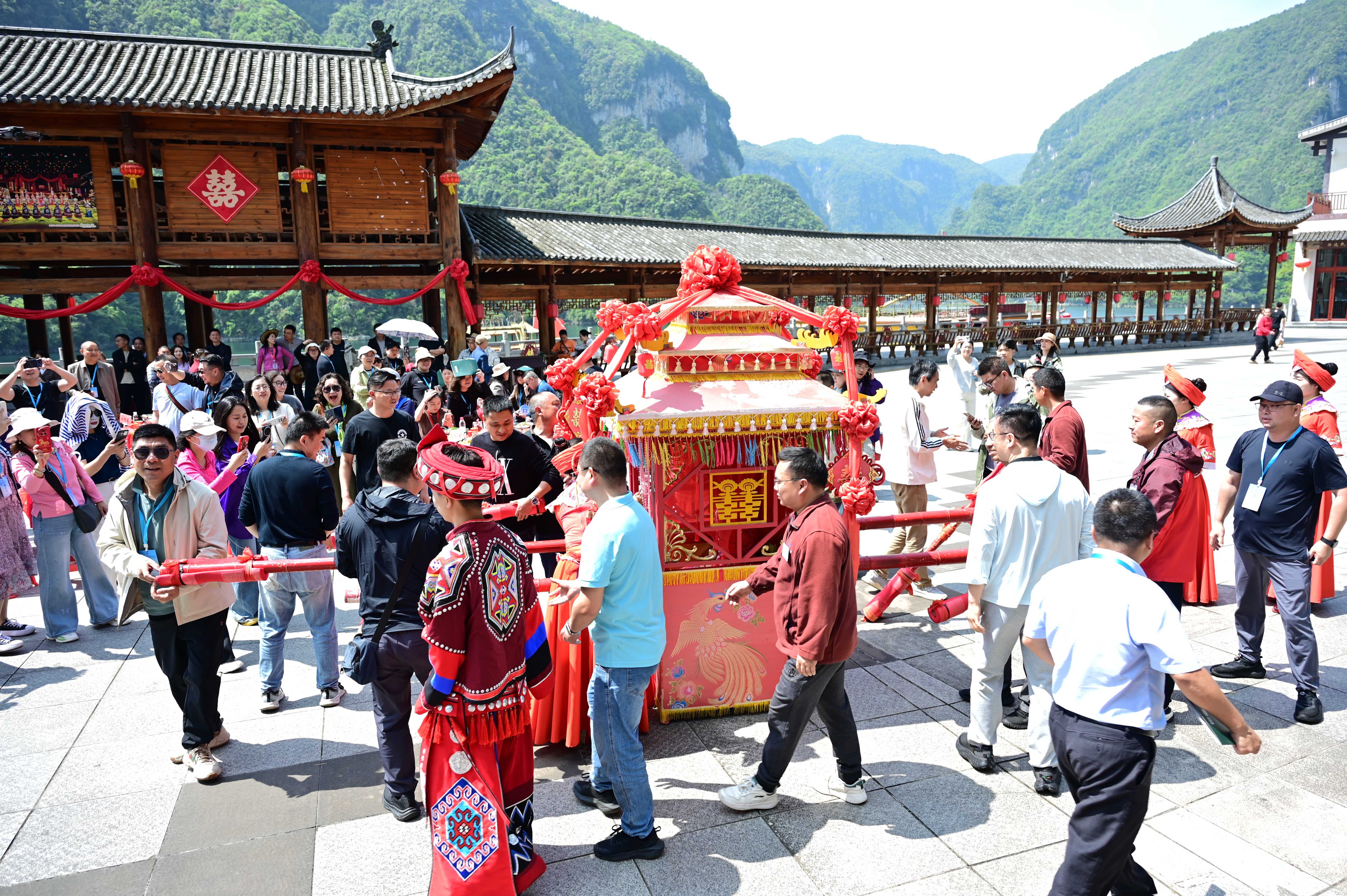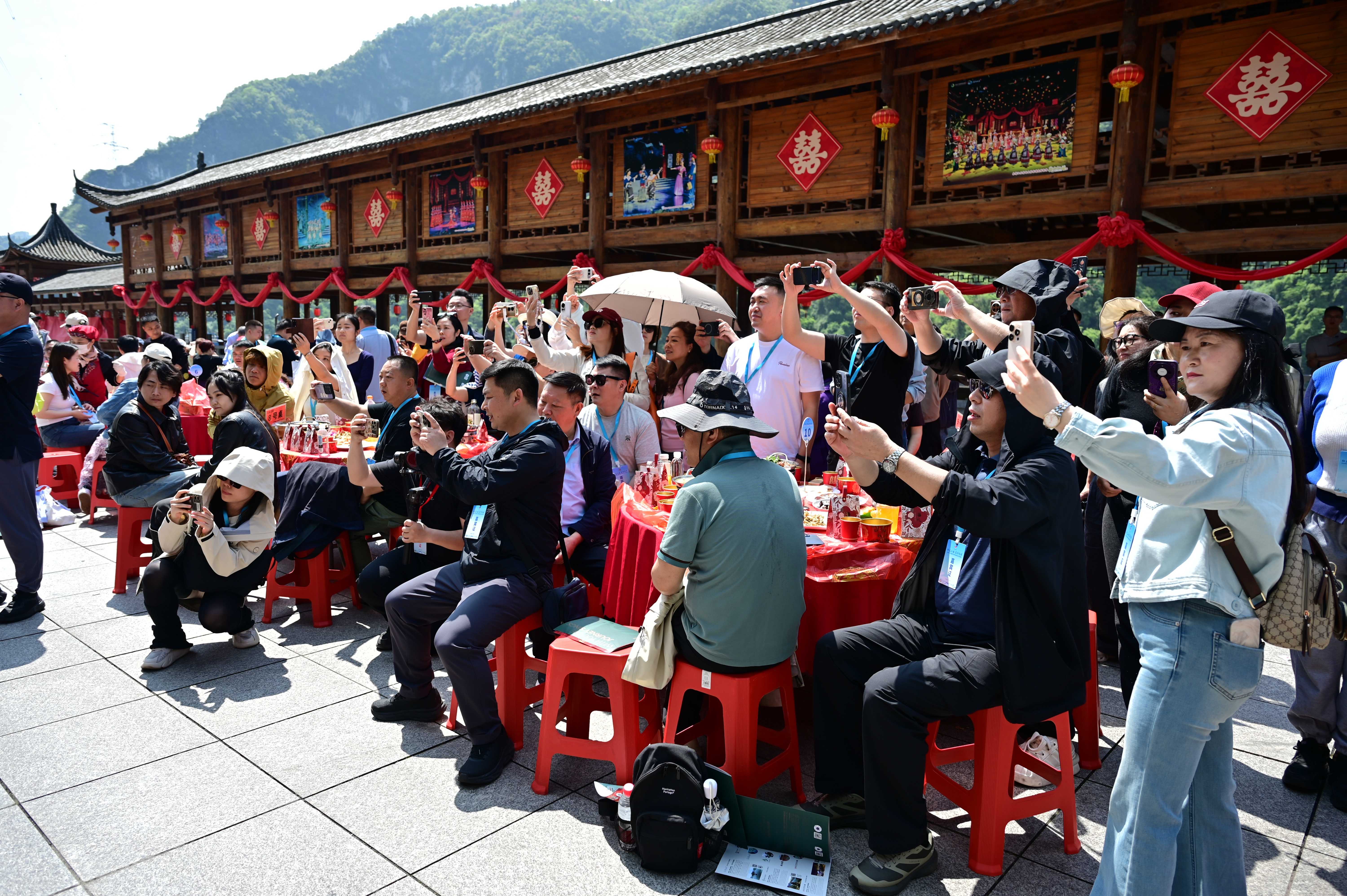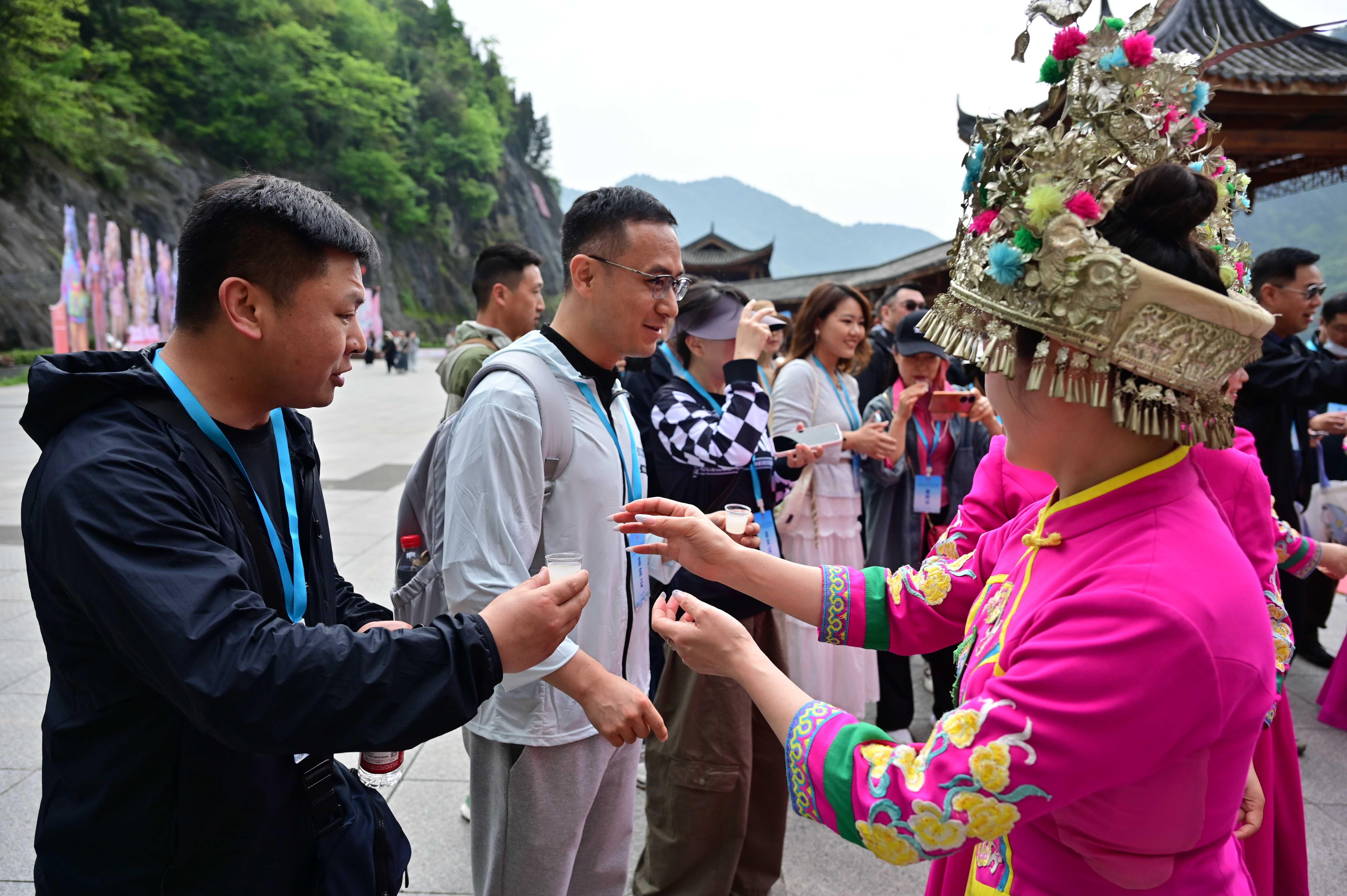 在迎宾环节,土家吹打乐、长阳山歌、巴山舞及“花神酿”敬酒礼等非遗互动场景,让考察团迅速融入土家文化氛围。全新打造的“花神下凡”互动场景,获得代表们一致好评。