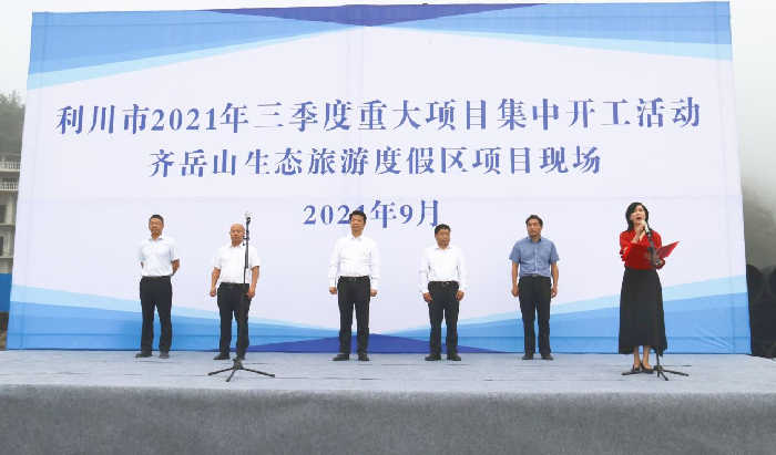 9月30日,利川市2021年三季度重大项目集中开工活动暨齐岳山生态旅游度假区项目开工仪式在南坪乡项目现场举行。利川市委书记刘智勇、市人大常委会主任蒋代成、市委常委、常务副市长何文建、恩旅集团党委书记、董事长周永彪、恩旅集团党委委员、副总经理尹锡峰出席活动。活动由利川市副市长周爱华主持。