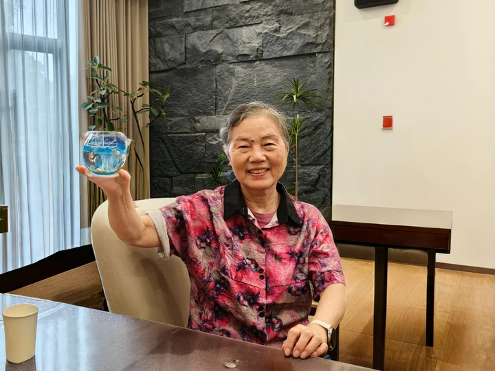 当天下午,退休教师长者与中心员工齐聚活动现场,共同开启这场兼具趣味性与仪式感的手工体验活动。活动伊始,中心工作人员率先展示了精心制作的海洋蜡烛成品,其绚丽多彩的色泽、精巧别致的造型,瞬间吸引长者们的目光。随后,工作人员围绕“融化蜡液、添加色素、倒入模具、嵌入装饰”等核心环节,逐一步骤细致拆解、清晰讲解,并同步分享实用制作技巧,确保每位长者都能轻松掌握操作要点。长者们热情高涨,纷纷动手参与,专注调配蜡液色彩、小心倾注模具,神情间尽显当年讲台之上的专注与严谨,仿佛重回教书育人的光辉岁月。