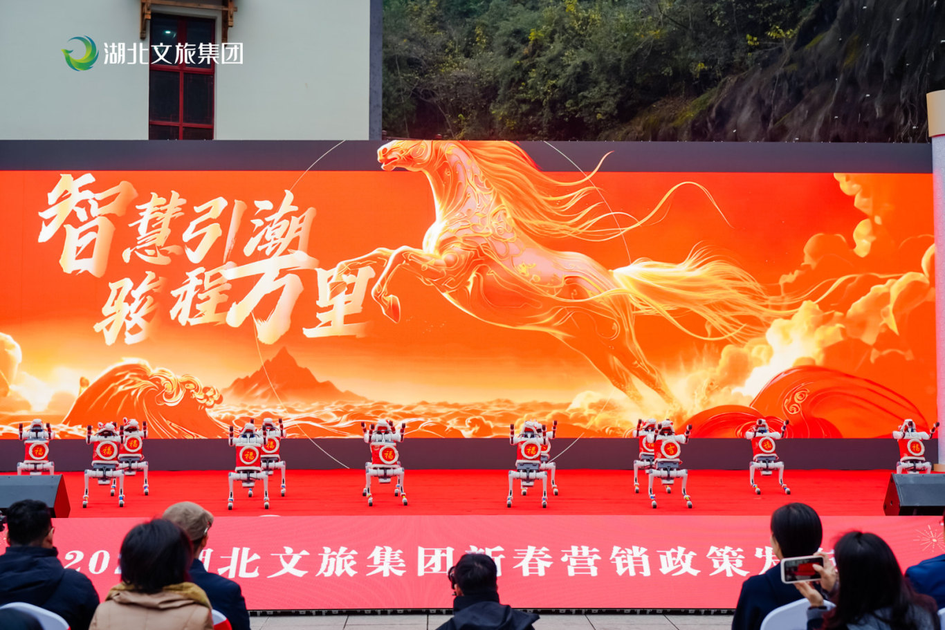 12月24日,“荆楚策马迎新春 文旅乘风启鸿程”2026湖北文旅集团新春营销政策发布会在宜昌隆重举行。鄂旅股份酷驰科技的机器狗天团惊艳亮相,以灵动创意点亮现场氛围。