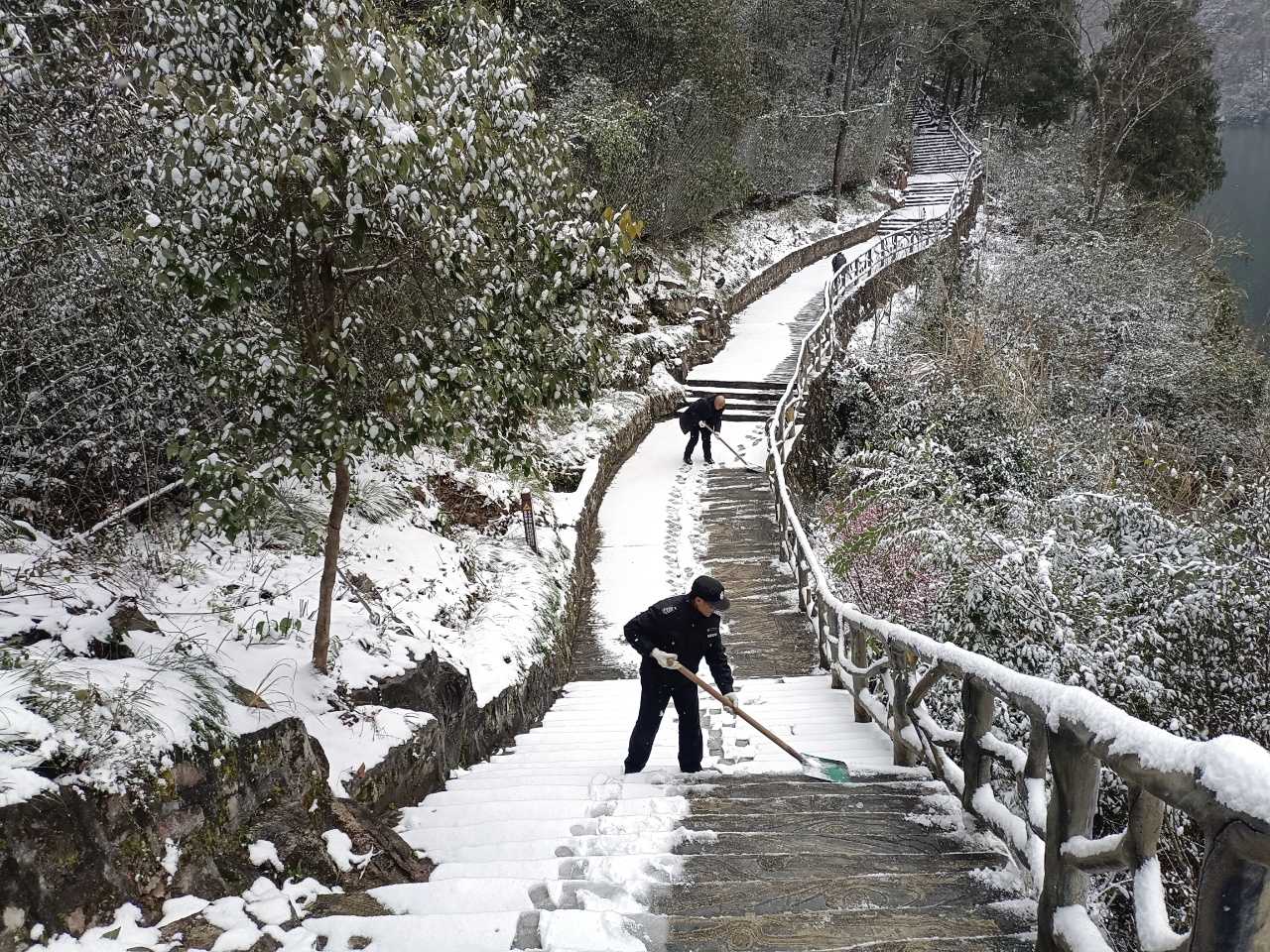 面对雪情,公司领导靠前指挥,第一时间部署应对工作。各责任部门按照“即下即清、雪停路通”原则,迅速组织人力、调配设备、清点物资,并果断对受影响的“影画游”线路采取临时关闭措施。党员干部带头冲锋,与职工群众并肩作战,对主干道、游步道、停车场、码头等关键区域开展扫雪除冰,全力保障核心区域畅通安全。