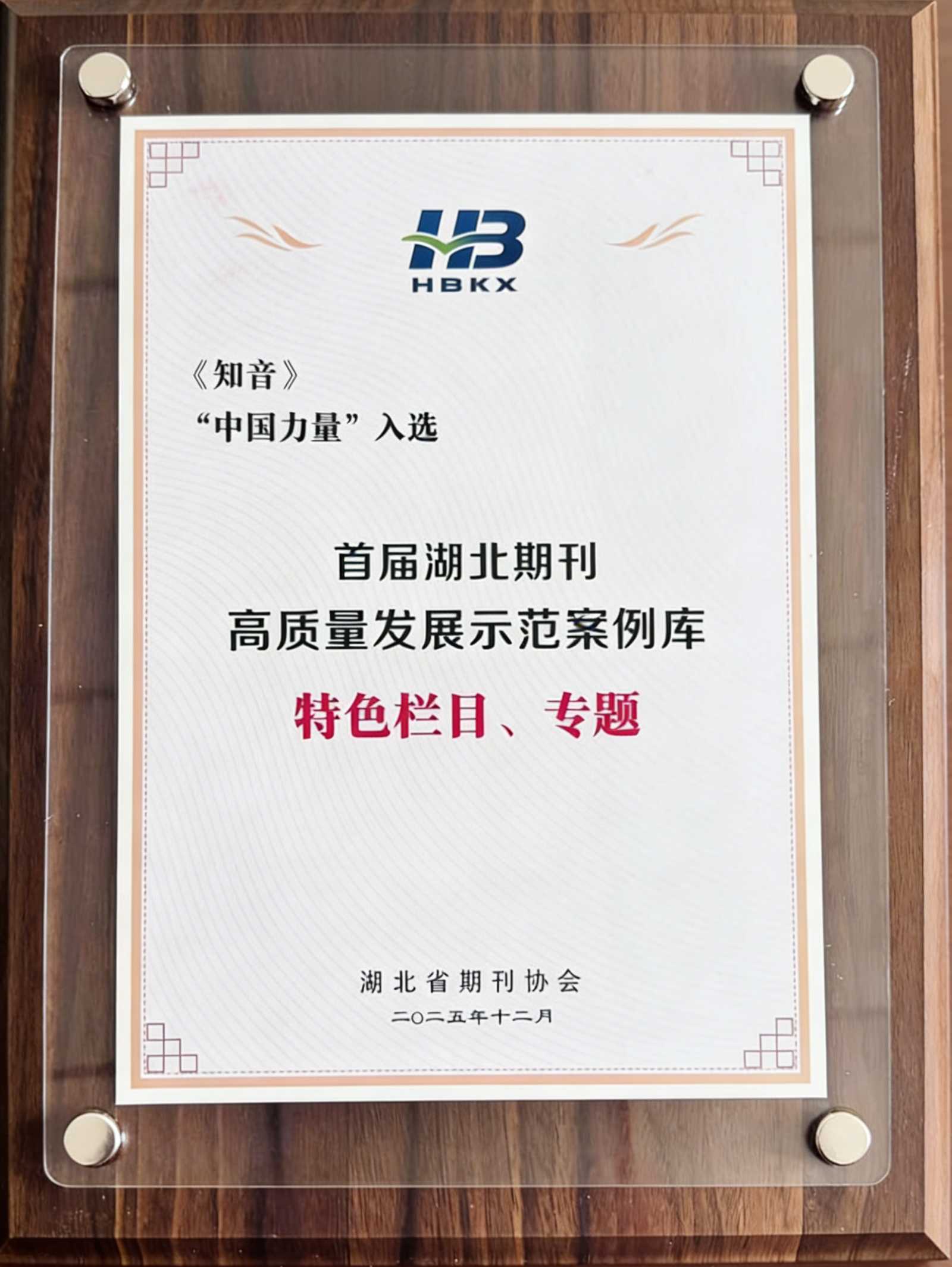 会上公布了首届湖北期刊高质量发展示范案例库入库项目,并为入库期刊和个人颁发证书。《知音》杂志“中国力量”栏目凭借其独特的选题视角和卓越的内容质量,成功入选“首届湖北期刊高质量发展示范案例库·特色栏目、专题”。
