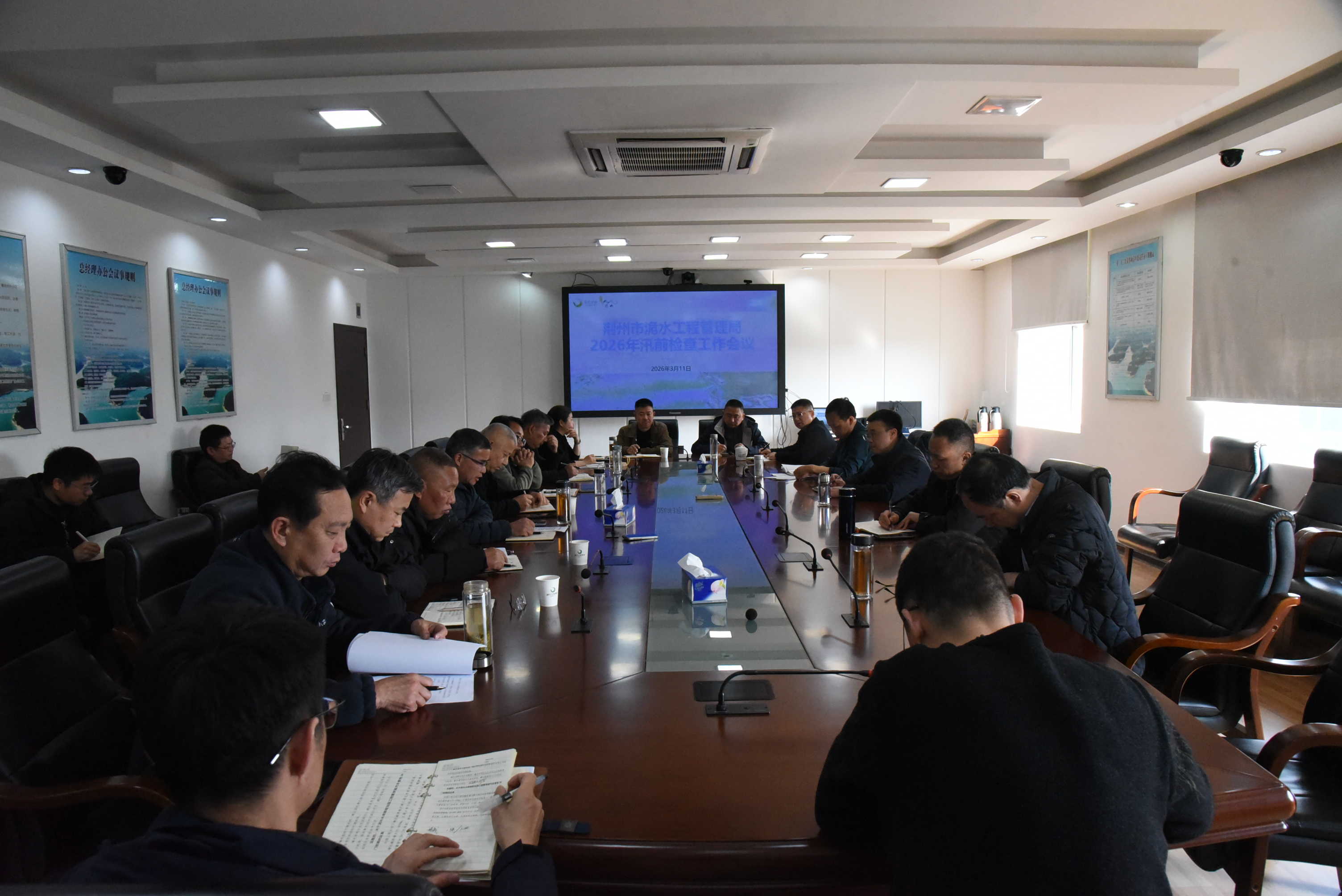 会议强调,工程管理单位责任要上肩,进一步做实日常巡检养护、结果导向和全过程台账;保障要落实,在生产、办公、生活方面,创造有利环境;机制要完善,进一步密切与地方党委政府、相关部门、属地村居关系,并提前做好调度排班;执行要严格,将“时时放心不下”的责任感转化为“事事心中有底”的行动力,进一步严肃防汛纪律,坚决执行调度指令,确保险情早发现、早处置,全力守护好流域安澜和人民群众生命财产安全。