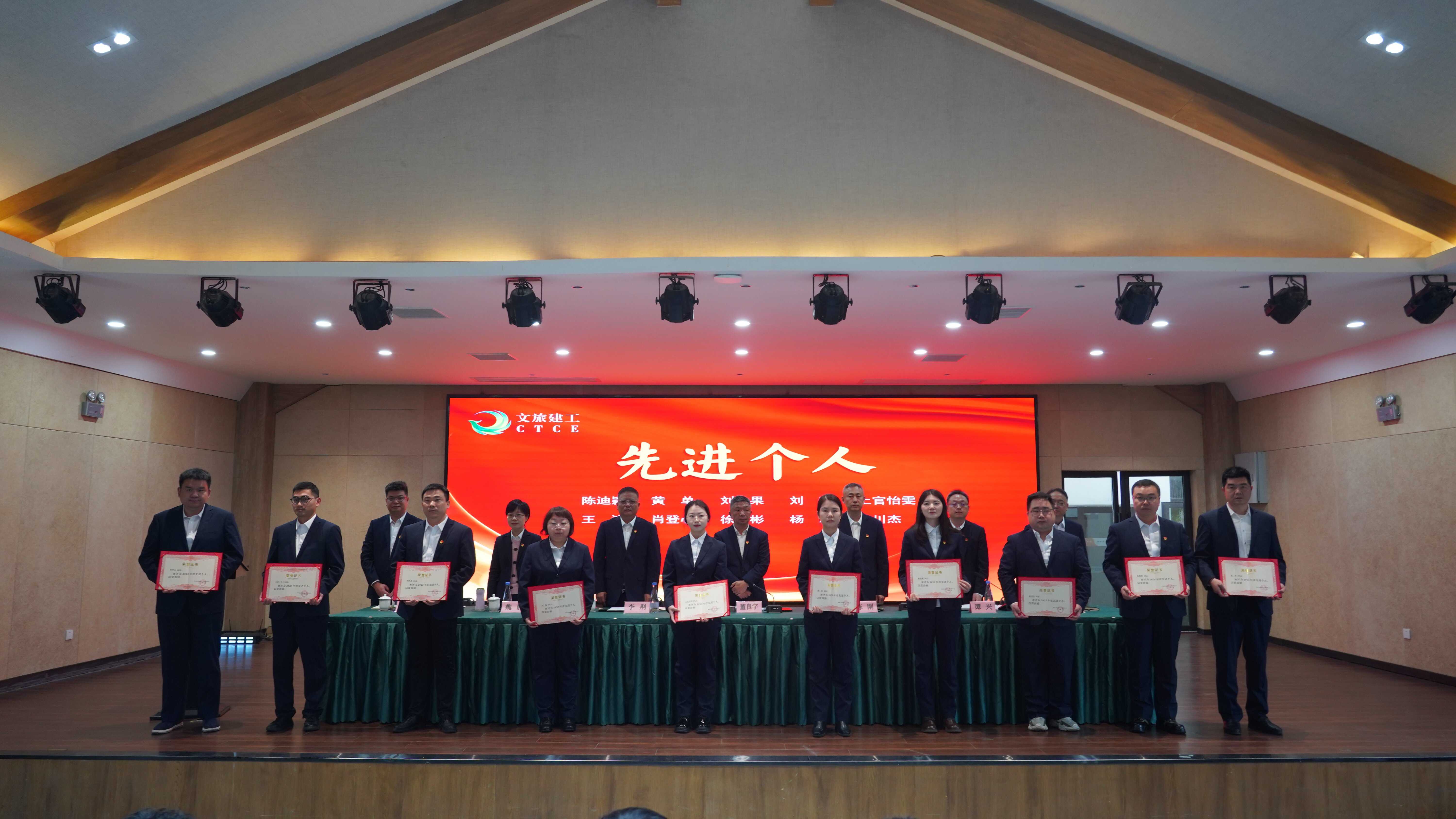 党总支委员、副总经理魏静宣读《关于表彰2025年度先进集体和先进个人的决定》,对6个先进集体和10名先进个人进行表彰。先进集体代表市场部商务专班、神农架项目部负责人及2位先进代表分别作交流发言,立足岗位、畅谈体会,展现了文旅建工人实干争先、奋发有为的精神风貌。