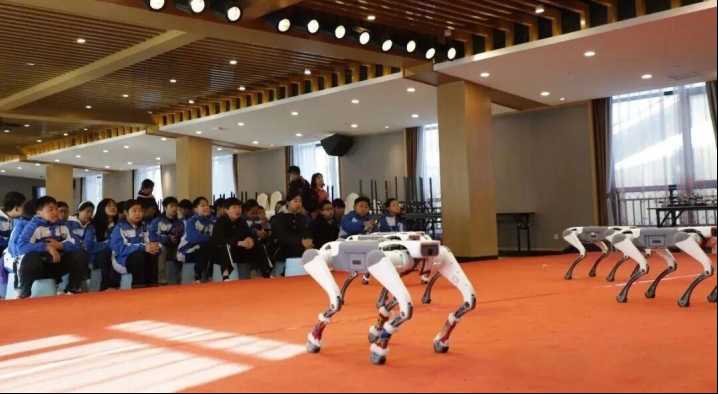 酷驰科技带来了灵动可爱的AI智能机器狗团队作为特邀“科技嘉宾”。活动现场,工作人员与景区研学导师的联合指导下,机器狗流畅完成奔跑、跳跃、翻滚、智能避障等高难度动作,瞬间点燃学生们的热情,现场掌声与惊叹声此起彼伏。