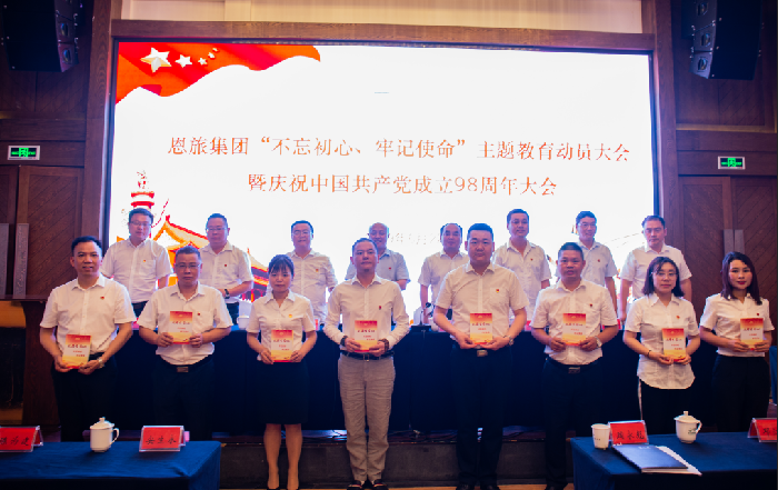 6月22日,恩旅集团召开“不忘初心、牢记使命”主题教育动员会暨庆祝中国共产党成立98周年大会,恩旅集团领导班子,各子公司经营班子、各党支部委员、受表彰的优秀党员和党务工作者以及团员青年代表等90人参加会议。