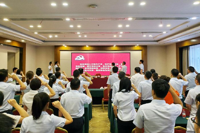 会上,全体党员重温入党誓词,集团党委班子成员为集团6月份入党的党员同志过政治生日。集团党委对先进基层党组织、优秀共产党员和优秀党务工作者进行表彰。