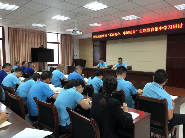 7月8日,清江画廊公司开展“不忘初心 牢记使命”主题教育第二次集中学习研讨,公司班子成员、全体党员参加。公司党委副书记、董事长熊虎主持学习研讨。