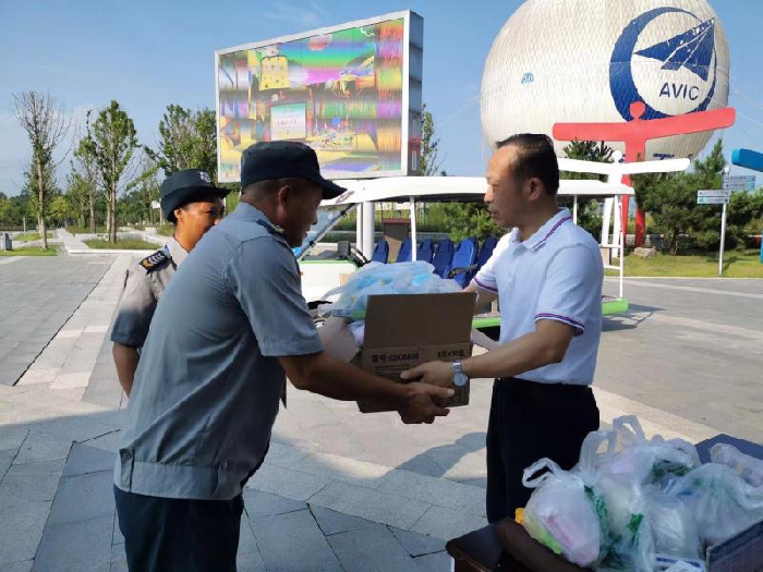 时值盛夏,骄阳似火,自入伏以来,荆门高温久居不下,酷暑难耐,为切实保障极客公园员工的职业安全与健康,做好防暑度夏工作,8月2日,鄂旅投荆门爱飞客投资有限公司董事长、总经理陶表扬带队深入极客公园,为工作在一线的员工“送清凉”。