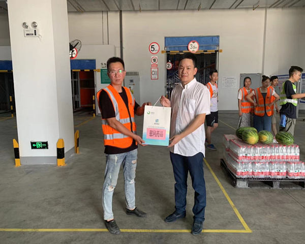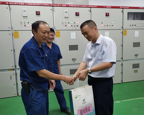 金宇公司党委委员、副总经理、总工程师苏祖国,党委委员、副总经理曹强,工会副主席魏薇代表金宇公司,前往配电房、仓库及二期项目为坚守在生产一线的员工送去西瓜、矿泉水和防暑药品等,为奋战在高温下的一线员工,送去一丝清凉、一份关爱。同时提醒一线员工,注意防暑降温,以强健的体魄和积极的精神状态投入到工作中,全力确保生命安全与生产安全。