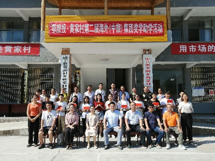 为进一步做好扶贫扶智工作,海外(中旅)集团按照集团总部的整体工作部署,积极践行扶贫工作。2019年8月16日,海外(中旅)集团副总经理吴锋一行赴恩施黄家村村,与鄂旅投集团驻农村工作队一起开展“扶智工程——颁发升学奖学金”活动,公司党群部部长刘庆麟,恩施分公司执行总经理李源深以及党群部相关人员同行。