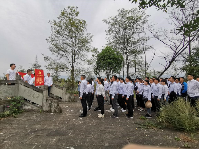 利川市汪营镇长乐坡是贺龙智取汪家营纪念碑所在地,也是汪营烈士陵园所在地,有7位烈士忠骨长眠于此。当天上午,在贺龙智取汪家营纪念碑前,面对党旗,全体党员庄严地举起右手,重温了入党誓词,敬献了花篮。在烈士陵墓前全体员工鞠躬、默哀,寄托哀思,并对纪念碑及烈士陵墓进行了清扫。
