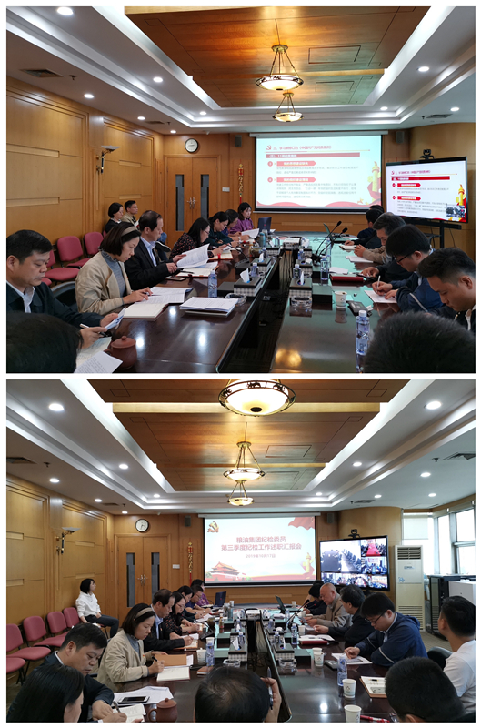 10月17日,粮油集团党委理论学习中心组召开扩大学习视频会,粮油集团班子成员、在汉党支部(总支)书记、纪检委员,党群办公室主要负责人在良友大厦29楼会议室参会,外地各子公司党组织书记、纪检委员通过视频系统参加。