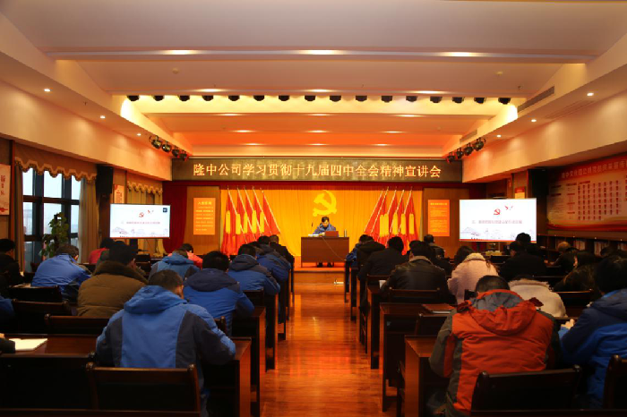 顾浩以《以十九届四中全会精神为指引,推动隆中公司高质量发展》为题,从“深刻领会十九届四中全会的意义、深刻领会13个显著制度优势、准确把握制度建设的总体部署、贯彻落实全会精神,推动隆中公司高质量发展”等四个方面对党的十九届四中全会精神进行了学习辅导。