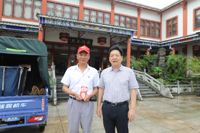 6月30日上午,在中国共产党百年华诞即将来临之际,石首公司党总支书记、董事长李友平来到桃花山公司慰问公司党龄最长的老党员张建平同志,给他送去党的关怀和温暖。