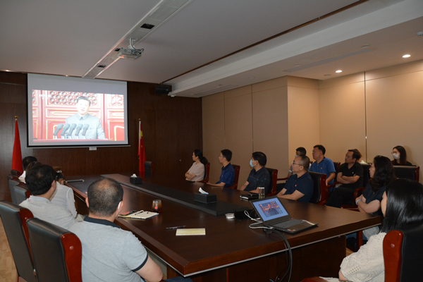 2021年7月1日上午,庆祝中国共产党成立100周年大会在北京举行,中共中央总书记、国家主席、中央军委主席习近平发表重要讲话。集团全体党员干部、青年团员在会议室集中收看大会实况直播。