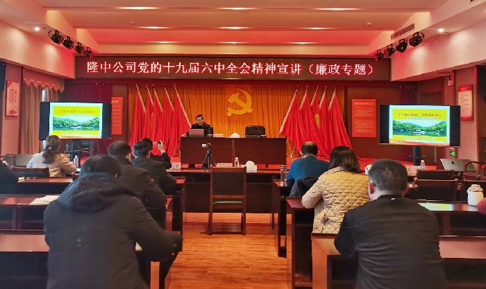 12月21日,隆中公司举办党的十九届六中全会精神学习班。襄阳市委宣讲团成员、湖北文理学院经济管理学院党委书记徐超围绕全会精神、湖北文理学院马克思主义学院教授詹学德围绕廉政专题进行宣讲,湖北文理学院政法副教授汪涛开展法治培训,公司党委书记顾浩就党的十九届六中全会精神进行宣贯。党委委员、纪委书记杨昌艾主持会议。