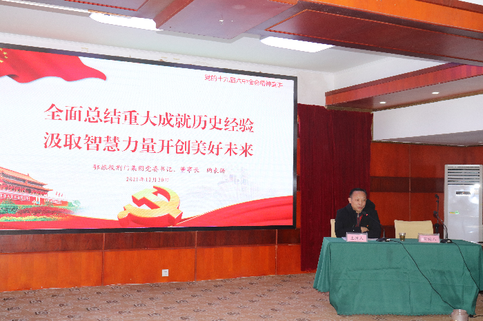 党委书记、董事长陶表扬作了题为《全面总结重大成就历史经验 汲取智慧力量开创美好未来》的宣讲报告,从五个方面对党的十九届六中全会精神作了深入浅出的解读和阐释,主题鲜明、分析透彻、严谨生动,对大家全面准确领会六中全会丰富内涵和精神实质,切实把思想和行动统一到全会精神上来,更加自觉地捍卫“两个确立”、践行“两个维护”,走好新的赶考之路起到重要的指导作用。