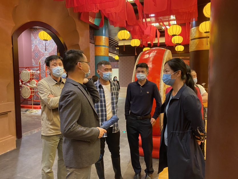 黄石公司党支部书记陈志波同志向大家介绍了东昌阁沉浸式演艺项目整体情况,东昌阁沉浸式演艺以一个完全架空的唐风仙侠世界为背景,讲述了一个关于孔雀石和天劫的故事,百人编剧团队全力巨献,百名专业演员全程陪伴,打造出百名玩家全时空沉浸式体验。