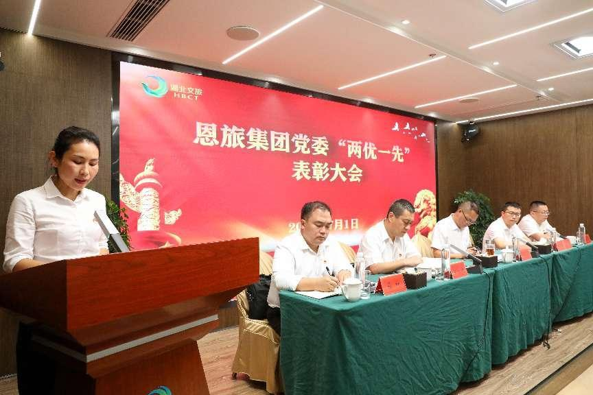 在庆祝中国共产党101年华诞和恩旅集团全系统深入学习贯彻落实习近平总书记考察湖北重要讲话精神及省第十二次党代会精神之际,7月1日上午,恩旅集团召开“两优一先”表彰大会。恩旅集团党委副书记、总经理田科伟出席会议并讲党课,党委委员、纪委书记、监事会主席邓江权主持会议。