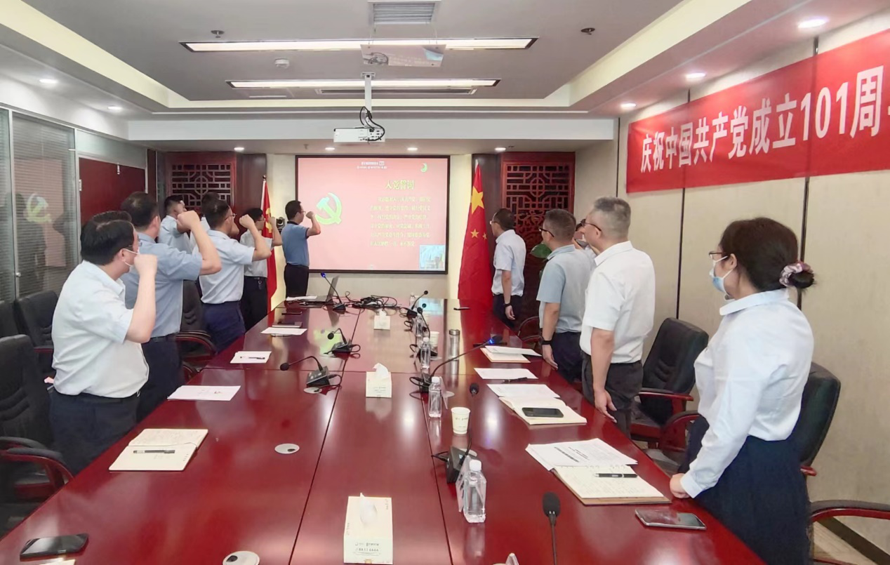 会议在庄严的国歌声中开幕,优秀共产党员代表叶珍军带领新党员代表王涛、宛伟林、段威、梅哲缘宣誓,与会党员一起重温入党誓词。随后,党委委员、纪委书记张海宣读了集团党委关于“两优一先”的表彰决定。