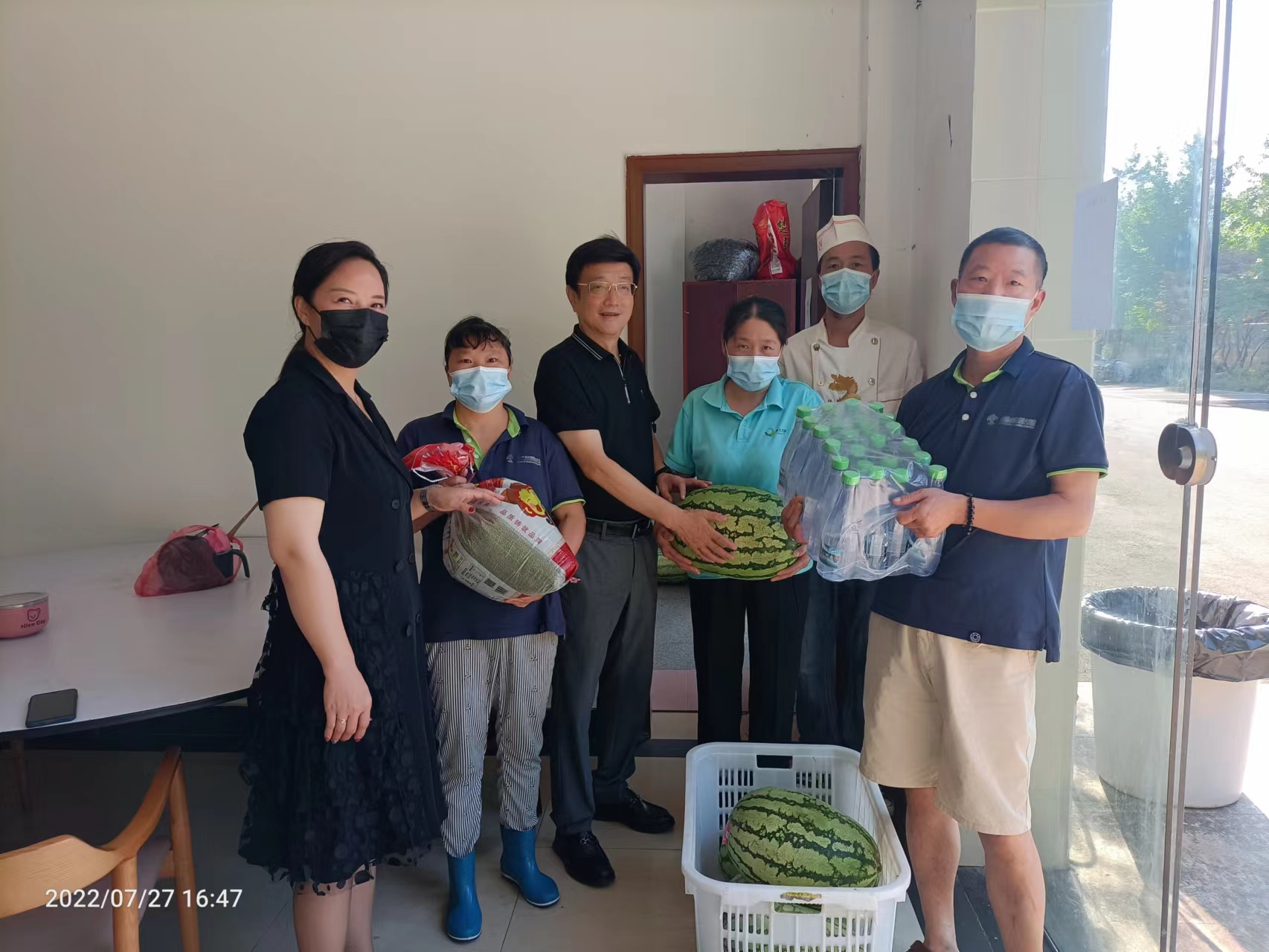 炎炎夏日送清凉,丝丝关怀暖人心。持续高温闷热天气,给坚守在一线的干部职工带来了严峻“烤”验,切实维护职工身心健康,进一步做好常态化疫情防控形势下的高温天气作业劳动保护工作。7月27日,集团工会主席唐彦平带队“夏日送清凉”慰问活动,为高温下依然坚守岗位的工作人员送去西瓜、水、绿豆汤等慰问物资,为奋战在一线的干部职工们送上清凉和关怀。
