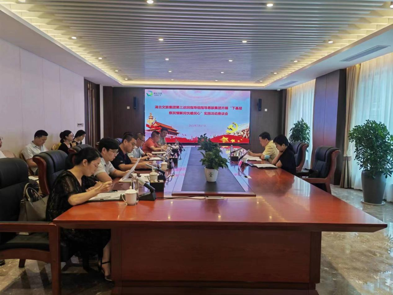 7月27日,湖北文旅集团第三巡回指导组组长、党委巡察办公室主任蒋晓毛一行来到恩旅集团,通过实地走访、现场查看、座谈交流,指导“下基层、察民情、解民忧、暖民心”实践活动。恩旅集团主要领导及班子成员、中层干部、部分职工代表参加座谈。