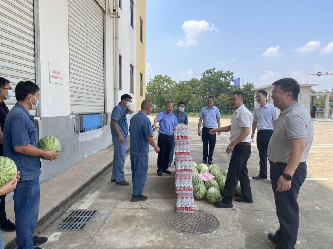 会后,刘忠义带领国贸集团工会、金宇公司班子成员开展夏季“送清凉”慰问活动,为金宇公司冷链物流库一线保安保洁、供电保障、检修维护、疫情防控等岗位职工送去党和工会的关怀和祝福。