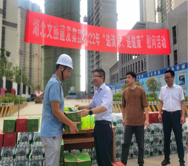 从7月下旬至8月上旬,湖北文旅集团党委委员、监事会主席张云,湖北文旅集团党委副书记易三平,建发集团党委书记、董事长王学军,党委副书记、总经理罗德才,党委委员、纪委书记、工会主席张海,党委委员、总工程师许玉发分别带队,前往严西湖项目部、光谷总部中心项目部、四新项目部、洪湖项目部、襄阳耕读小镇、神农架项目部、物业公司等建设一线,看望慰问分布在荆楚各地的10个在建项目的员工和1000多名工人。每到一个项目,集团领导都为一线建设人员送去西瓜、矿泉水、药品等防暑降温物资,详细了解一线员工的生活、工作以及项目进展情况,并要求施工单位合理安排作息时间,确保工人身心健康和生产安全。