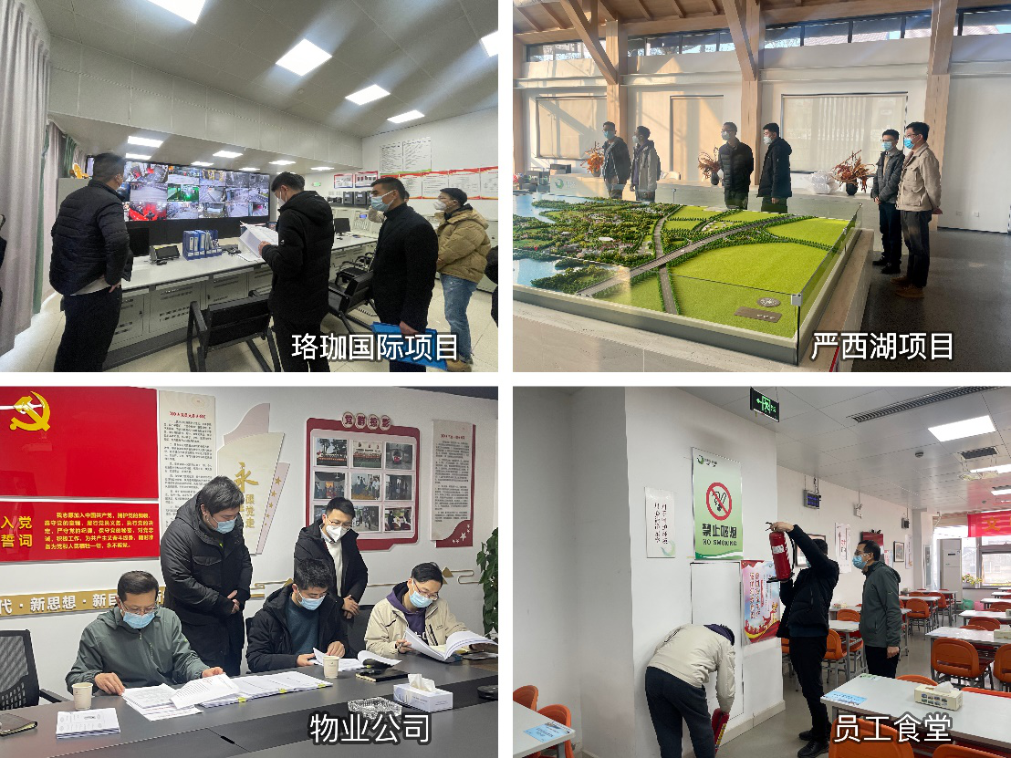 在珞珈国际项目、严西湖项目、光谷中心3个项目现场,检查组对现场安全防护、机械设备管理、施工电梯等情况进行了详细检查并进行了问题反馈。在物业公司和商管公司现场,检查组现场检查了湖北文旅大厦、today便利店和员工食堂物业管理服务情况,仔细查看了燃气管道、水电管路、消防安全设施、消防通道等重点部位的运行情况并现场进行了问题反馈。